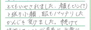 顔もぴーんと張り小顔、眼もパッチリしたかんじを受けました。続けて使用していくと心身ともに元気になれるように思いました。